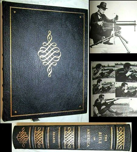 1995 THE RIFLE IN AMERICA PHILIP B. SHARP FULL LEATHER GUN NRA 22kt Gold Ammo