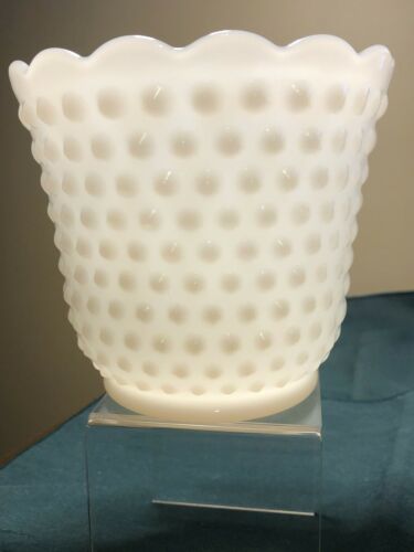 Title (ebay affiliate link): FIRE KING OVEN WARE WHITE MILK GLASS HOBNAIL VASE/PLANTER