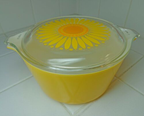 Title (ebay affiliate link): Vintage Pyrex Yellow Casserole w Daisy Sunflower Lid 1 qt #473