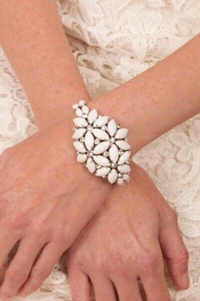 Vintage Unsigned Milk Glass Crystal Bracelet with clasp