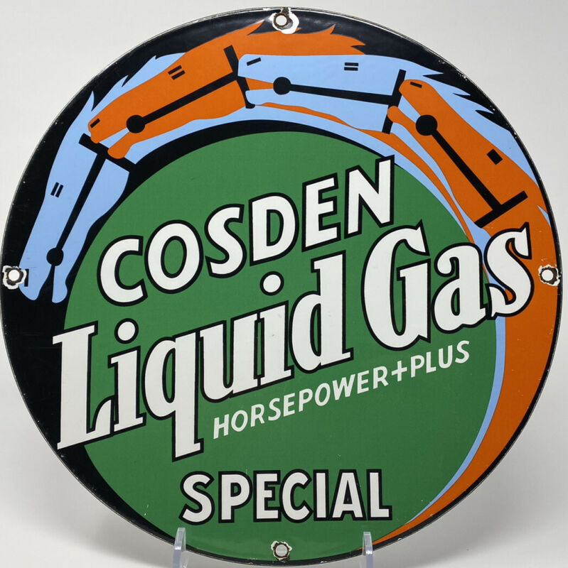 Title (ebay affiliate link): VINTAGE COSDEN LIQUID GASOLINE PORCELAIN SIGN GAS STATION PUMP PLATE MOTOR OIL