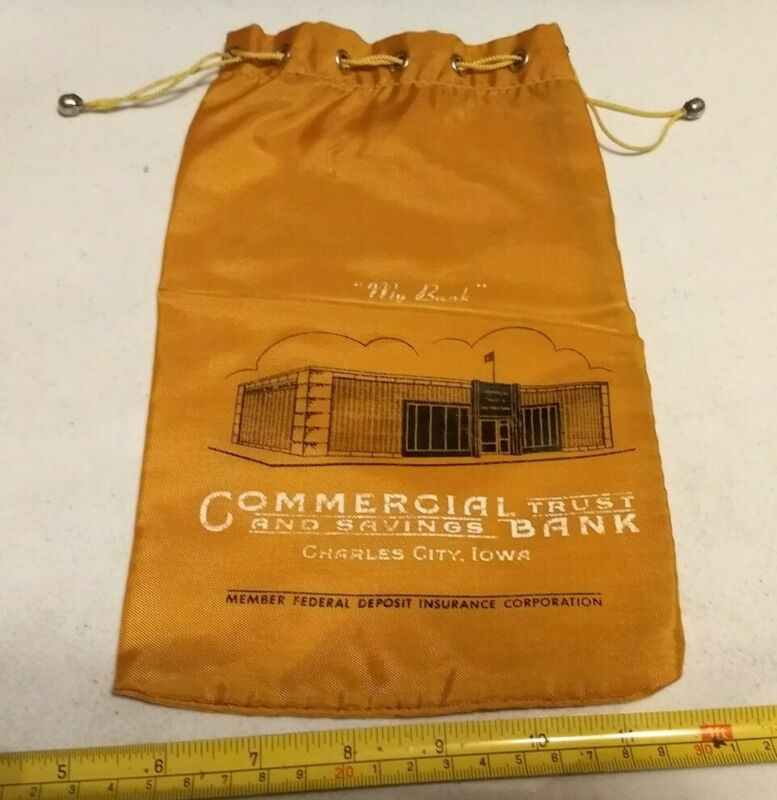 Title (ebay affiliate link): Vintage Commercial Trust & Savings Bank Charles City Iowa Advertising Money Bag