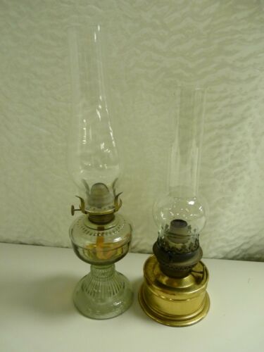 Pair of Oil Lamps Lamp Glass Shades 32cm & 38cm Brass Base D30 FREE P&P