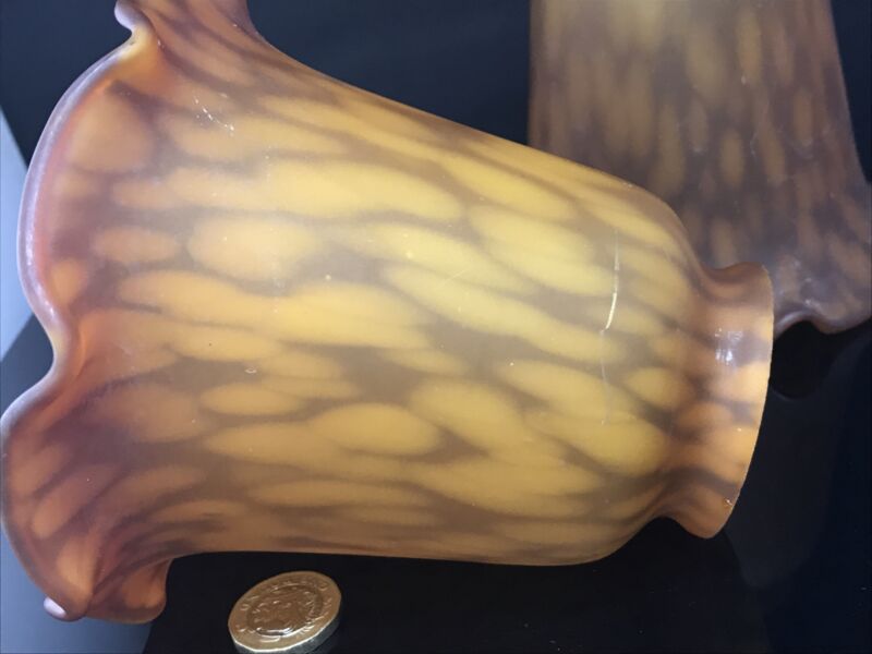 Art Deco Tortoiseshell Glass Lampshades Pair Set 2 Brown