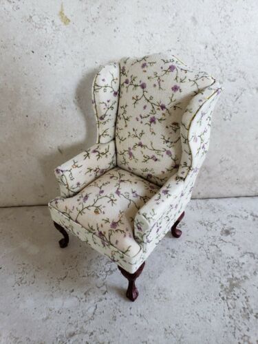 Vintage Dollhouse Miniature Furniture Floral Wing Back Chair