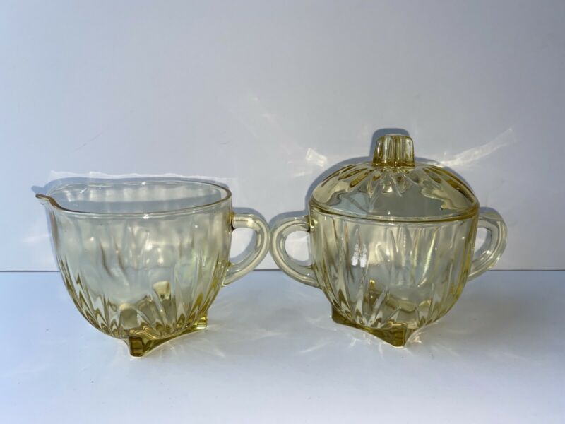 Title (ebay affiliate link): Vintage Federal Victory Star Glass Amber Yellow Cream And Sugar With Lid