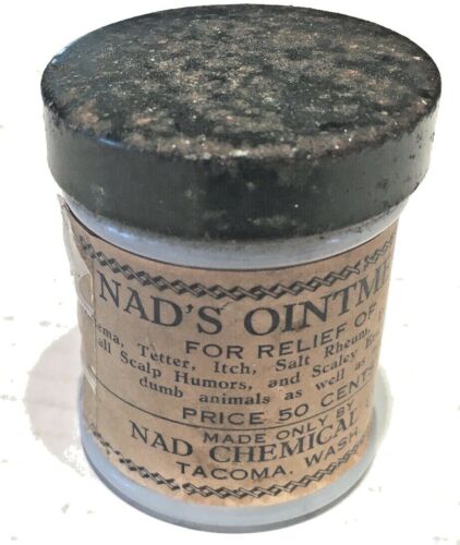 Title (ebay affiliate link): Tacoma WA Nad Chemical Co Nad''s Ointment Milk Glass Jar with Contents