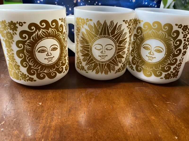 Title (ebay affiliate link): Vintage Milk Glass Coffee Mug 1950s Celestial Mugs Set Of 3 Sun Great Condition