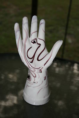 PURPLE & MILK WHITE SLAG GLASS Jewelry RING HOLDER HAND