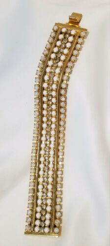 Title (ebay affiliate link): Vintage Hobe rhinestone bracelet moon glow glass milk glass cabs gold mesh signe
