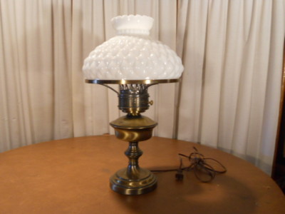 VINTAGE BRASS & FIGURAL MILK GLASS TABLE LAMP:LG BEAUTY