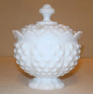 Vintage White Milk Glass, Candy / Trinket Box, Hobnail