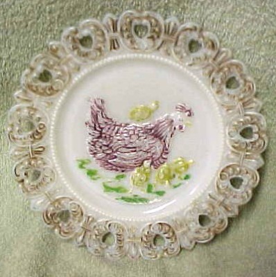 Antique Milk Glass Easter Plate/Sitting Hen/Chicks