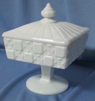 Milk glass sweetmeat/candy box, Old Quilt, Westmoreland