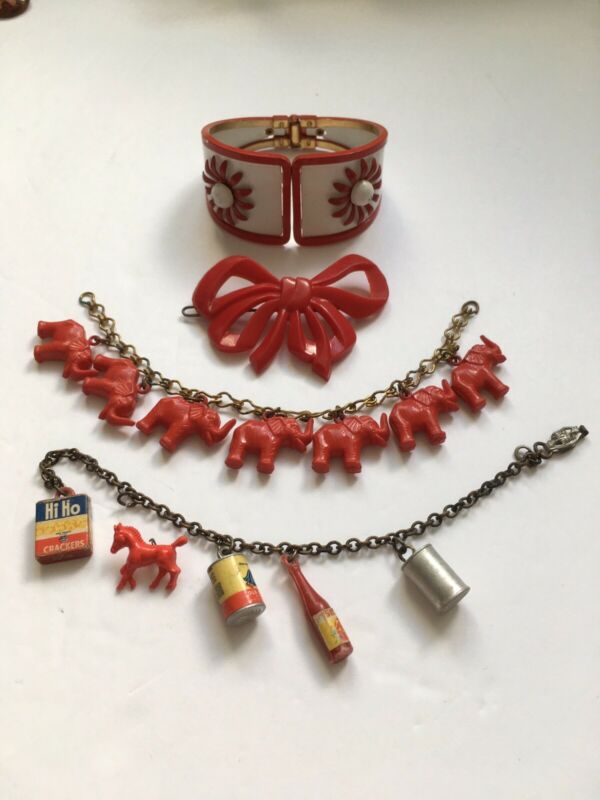 Title (ebay affiliate link): Vintage GUMBALL CRACKERJACK Advertising Food Charm Bracelet Lot Red Elephant TLC