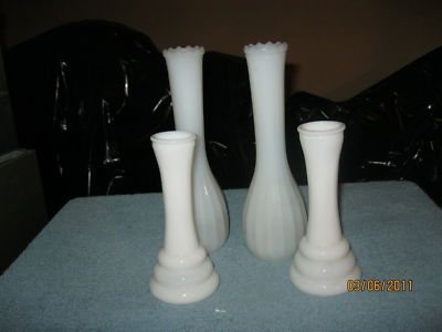 ~4~WHITE MILK GLASS BUD VASES~4~