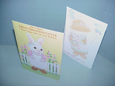 Title (ebay affiliate link): VINTAGE BUNNY BIRTHDAY CARD MINT PAPER DOLL CUTE EASTER