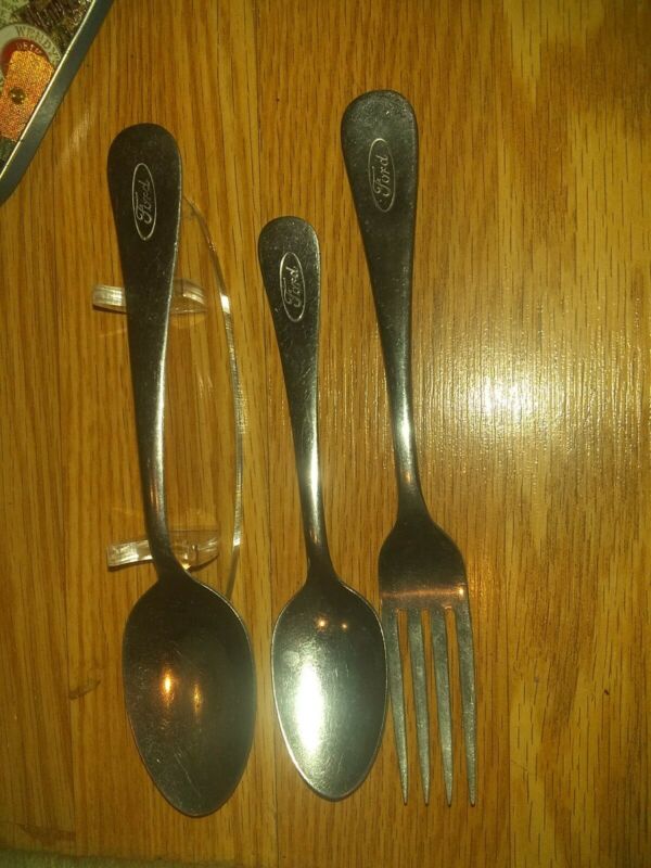 3 Vintage FORD MOTOR COMPANY cafeteria THOR STAINLESS SPOONs fork
