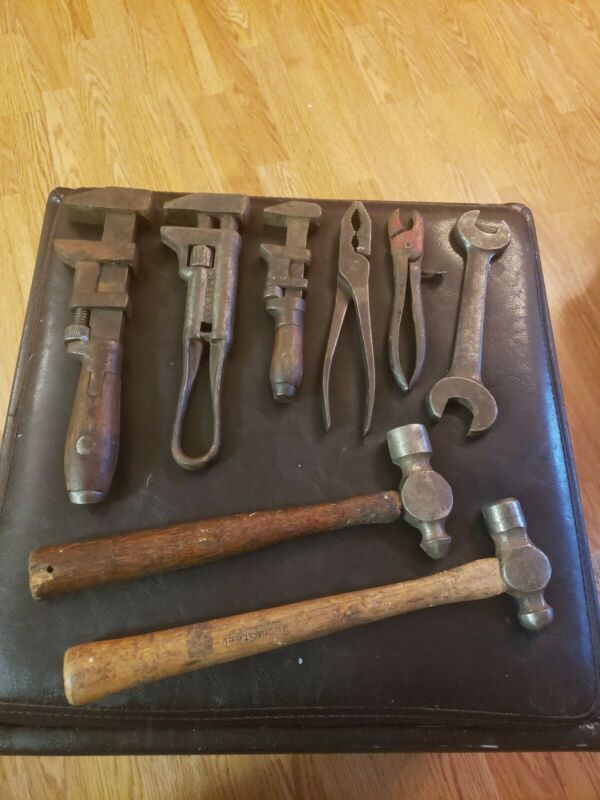 Vintage Tool Lot Adjustable Wrenches Old Wood Handle Tools