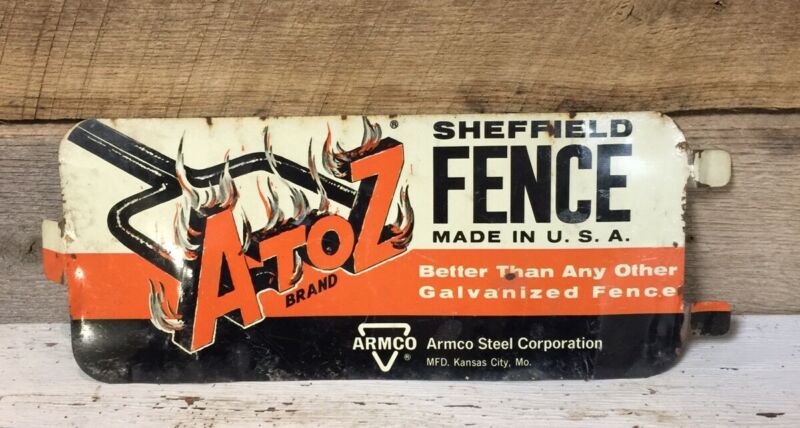Title (ebay affiliate link): VINTAGE METAL ADVERTISING SIGN SHEFFIELD FENCE MADE IN U.S.A. ARMCO STEEL CORP.