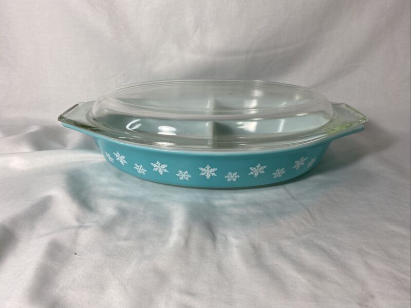 Turquoise Pyrex Divided Casserole Dish Snowflake