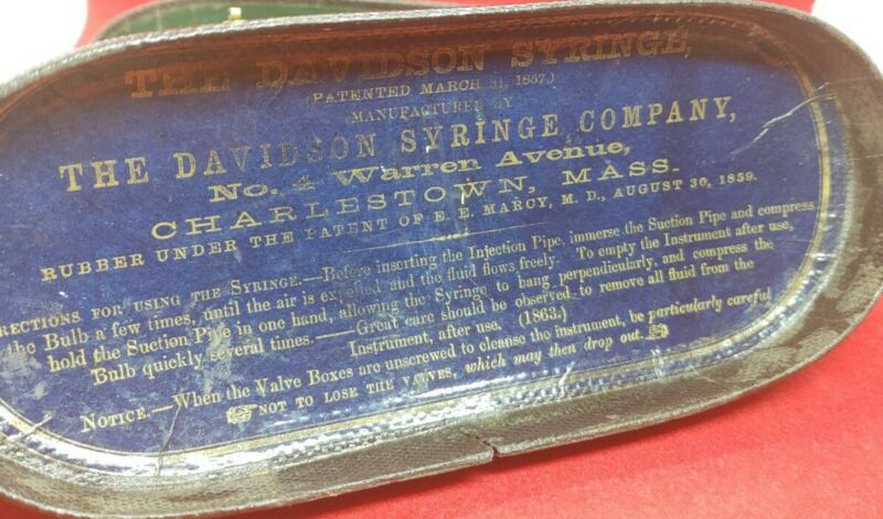Title (ebay affiliate link): Antique Medical Syringe Box 1857 The Davidson Syringe Company Charlestown, Mass.