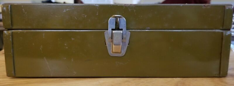 Title (ebay affiliate link): Vintage Army Green Metal Cash Tackle Tool Box