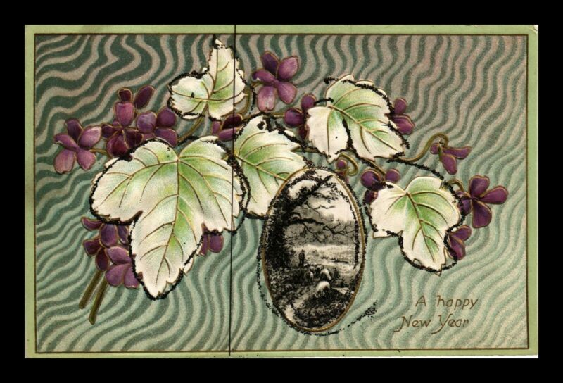 Title (ebay affiliate link): DR JIM STAMPS US VIEW LEAVES VIOLETS GLITTERED NEW YEAR GREETING POSTCARD