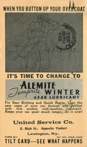 1937 KENTUCKY ADVERTISING POSTCARD: ALEMITE TEMPRITE WINTER LUBE LEXINGTON , KY