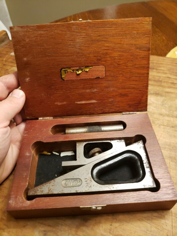 VINTAGE LS STARRETT NO 599 PLANER GAGE MACHINIST TOOL LEVEL USA MADE * WOOD BOX