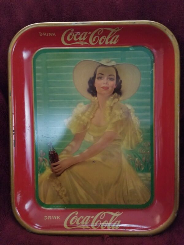 Title (ebay affiliate link): Vintage Original 1938 Coca Cola Tray Lady In Yellow Coke Advertising Ohio Lot 2