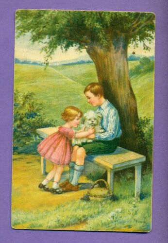 CHILDREN AND DOG VINTAGE POSTCARD 33