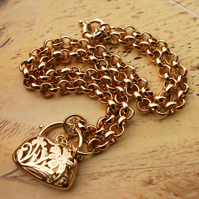 Title (ebay affiliate link): 9K Yellow Gold GF Solid Necklace & Padlock "Stamped 9K"
