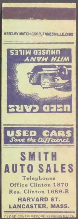 Title (ebay affiliate link): Smith Auto Sales - Lancaster MA Matchbook Cover
