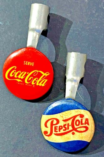 Title (ebay affiliate link): 2 1960s/70s VINTAGE SODA ADVERTISING SIGN PENCIL TOPPER Serve COCA COLA & PEPSI
