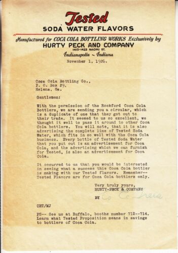 Title (ebay affiliate link): TESTED SODA WATER FLAVORS HURTY PECK & COMPANY LETTERHEAD DATED nOV. 1, 1926