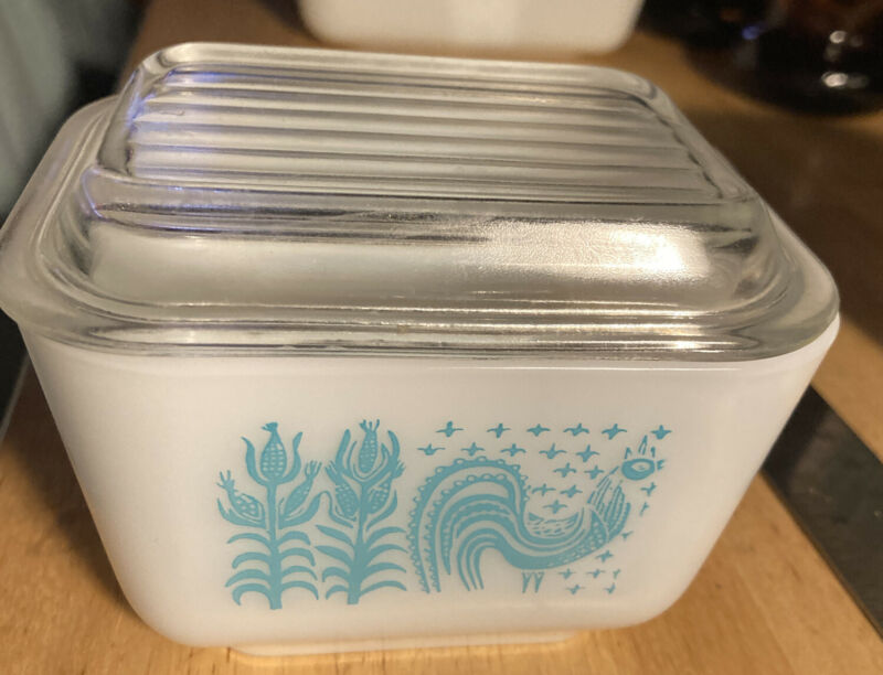 Title (ebay affiliate link): Vintage PYREX Turquoise AMISH BUTTERPRINT Refrigerator Dish 501 w/LID 1-1/2 Cup