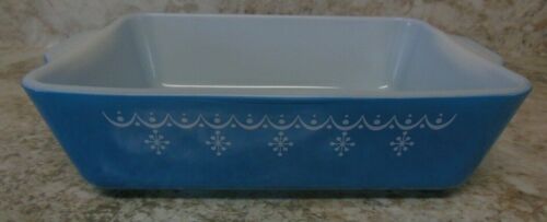 Title (ebay affiliate link): VINTAGE PYREX BLUE SNOWFLAKE GARLAND BAKING DISH-0503 8 1/2" x 6 3/4"