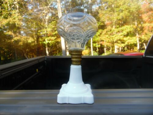 EAPG Oil Lamp Stand / Milk Glass Base / Scalloped Diamond Band And Wheel Pattern