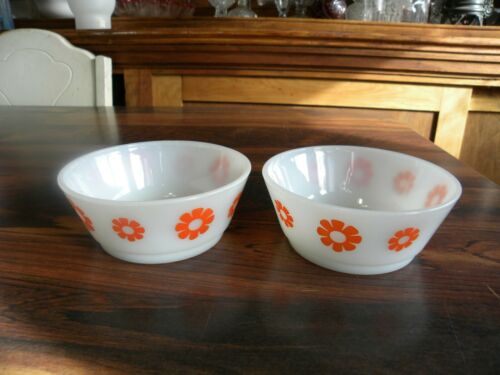 2 Vintage CEREAL BOWLS/Red Daisies/Fireking