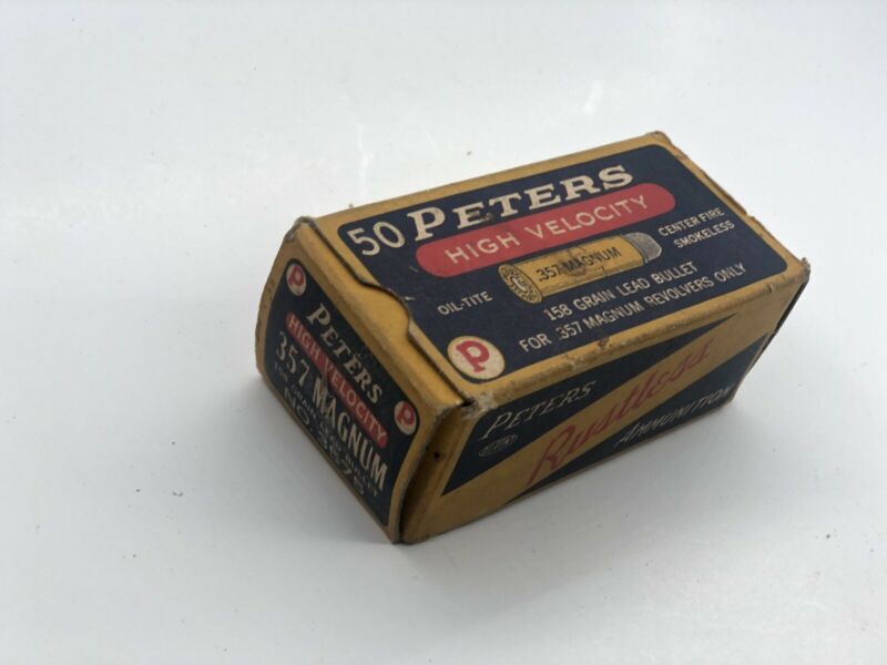 Title (ebay affiliate link): Vintage Peters High Velocity 357 Magnum 158 Grain Lead Bullet EMPTY Ammo box
