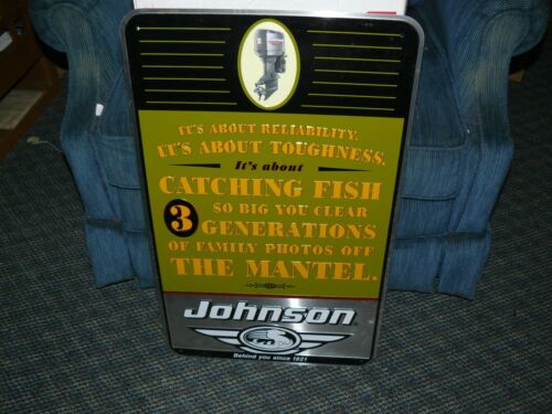 johnson outboard motor embossed metal sign 15 x 25 by johnson motor co.