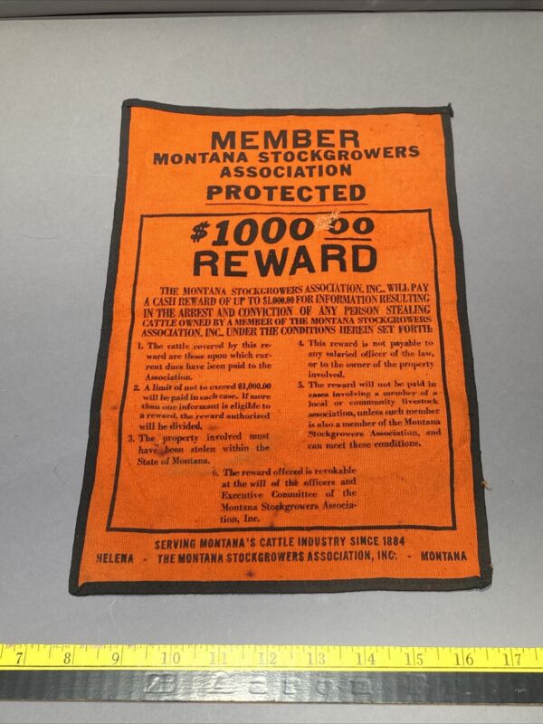 Vintage Montana Stockgrowers Association Cloth Reward Sign Helena, Montana