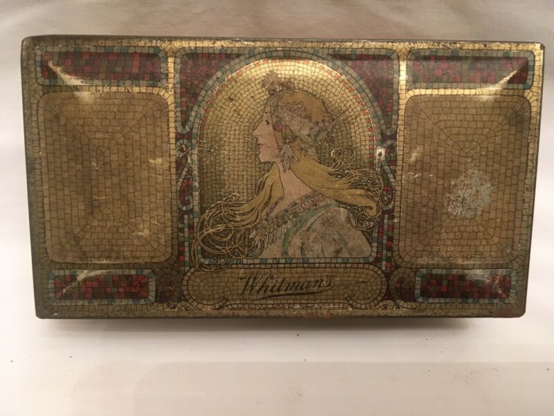 Title (ebay affiliate link): Vintage Whitmans Salmagundi Chocolates Metal Tin Box Art Nouveau 1920s