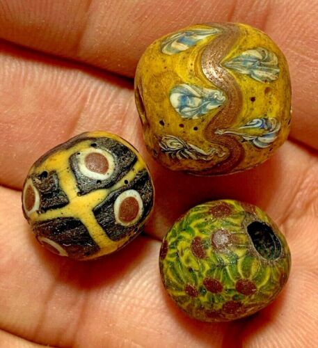 Title (ebay affiliate link): LOT OF 3 pcs PHOENICIAN GLASS LARGE COLOURED BEADS CIRCA 100-300 AD