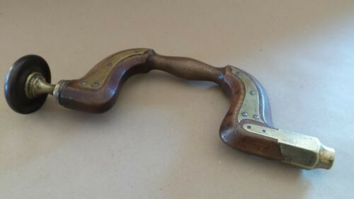 Title (ebay affiliate link): ANTIQUE Wood and Brass Woodworking Auger Brace ~ Marked " DICKINSON"