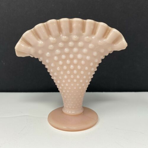 Vintage Fenton Rose Pastel Peach Hobnail Crimped Vase 4"