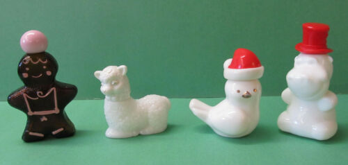4 Vtg Brown & Milk Glass Christmas Avon Bottles Gingerbread Girl Hippo Bird Lamb