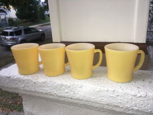 Title (ebay affiliate link): 4 Fire King Anchor Hocking Fired On Sunshine Yellow Coffee Mugs D Handle Vintage
