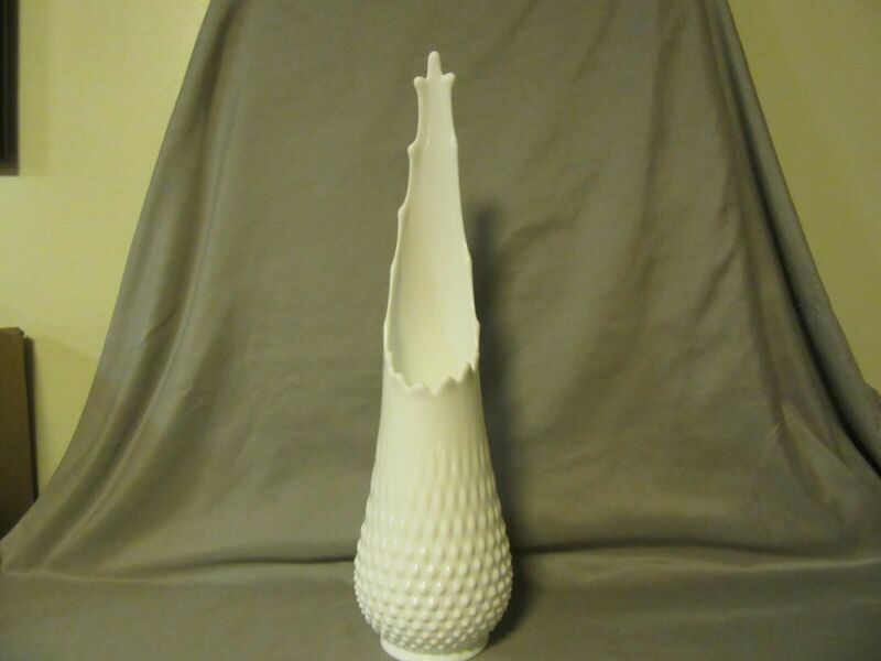 Title (ebay affiliate link): Fenton ? White Milk Glass Vase Stretch Swung Hobnail Pattern Scalloped Rim 18"